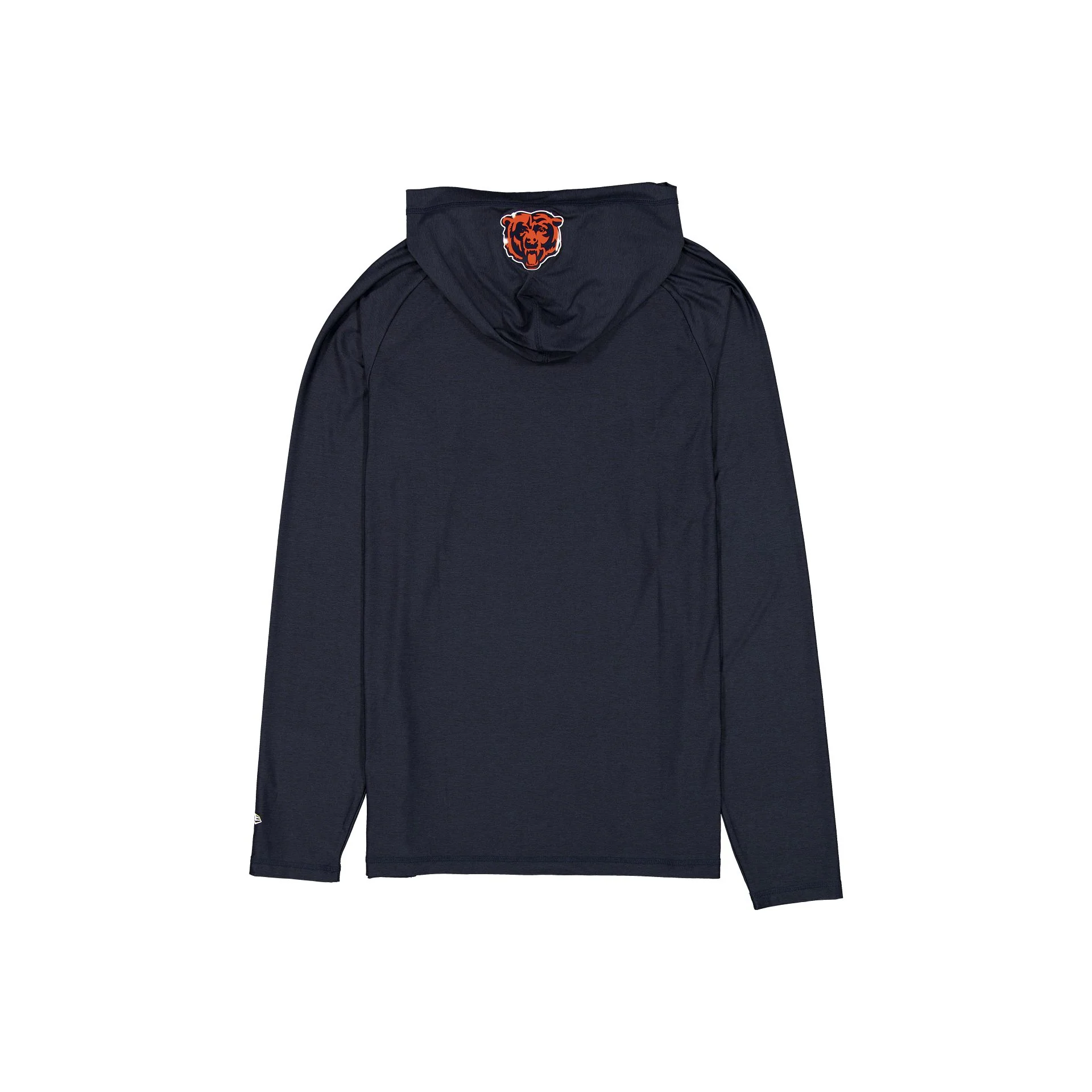 The Chicago Bears 2025 Functional Fandom Hoodie features a silicone print Bears logo at the chest with a matching logo at the hood and an Official NFL Combine Authentic patch at the left hip. Additional details include moisture-wicking and antimicrobial fabric with UV protection.