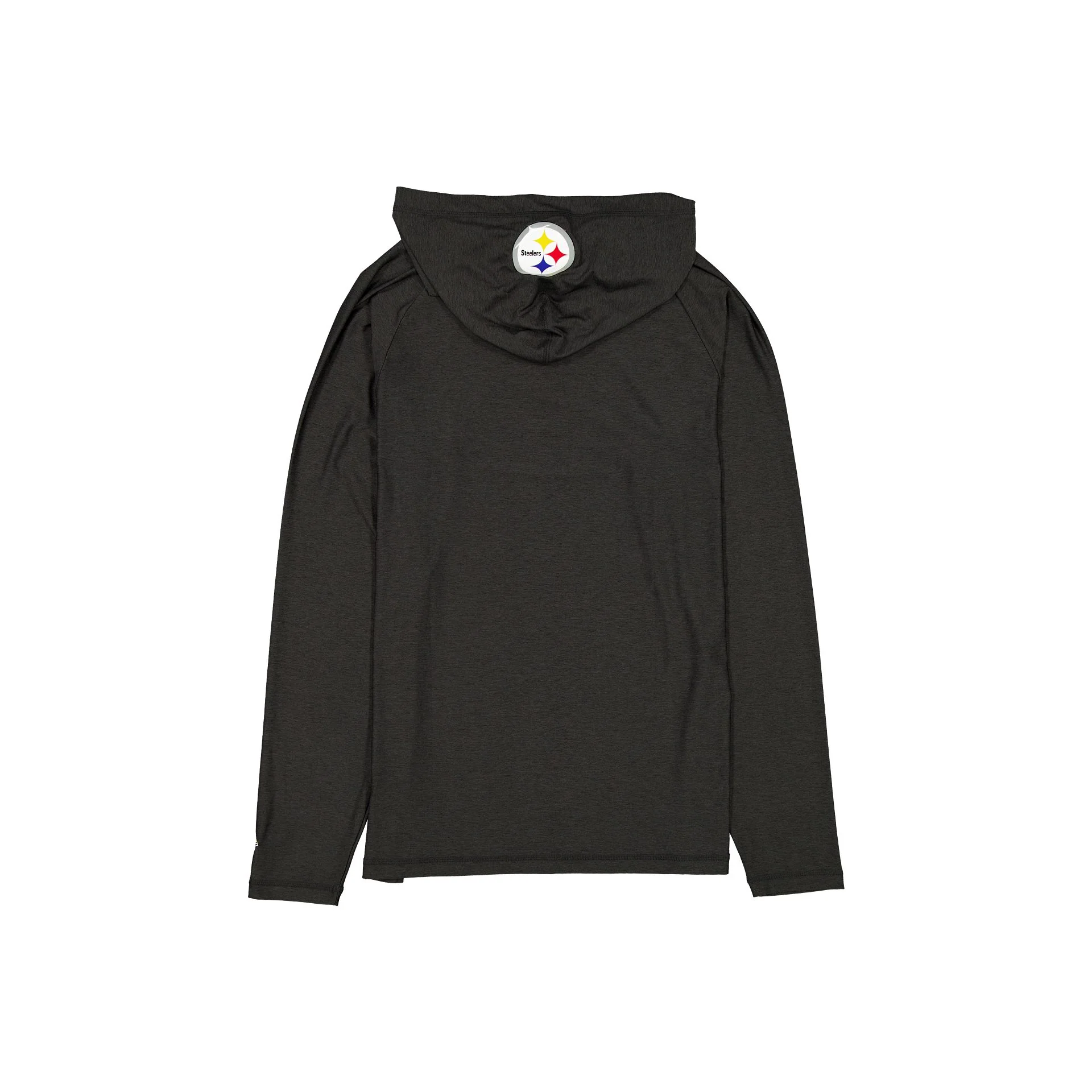 The Pittsburgh Steelers 2025 Functional Fandom Hoodie features a silicone print Steelers logo at the chest with a matching logo at the hood and an Official NFL Combine Authentic patch at the left hip. Additional details include moisture-wicking and antimicrobial fabric with UV protection.