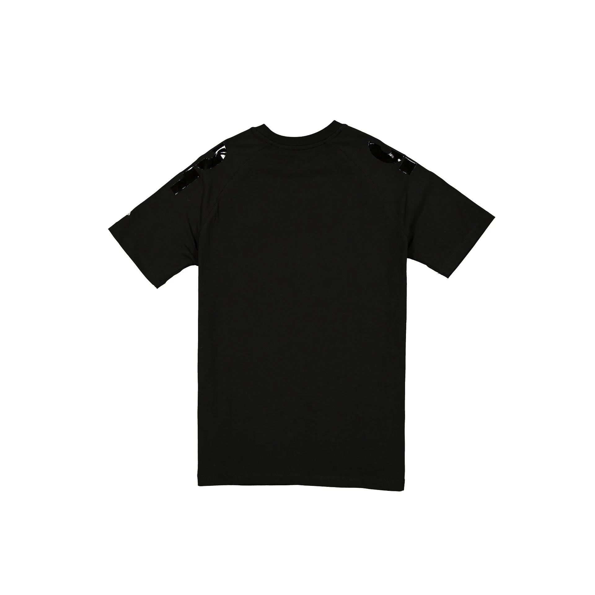 The San Francisco 49ers 2025 Functional Fandom Black Short Sleeve T-Shirt features an embroidered silicone 49ers logo at the left chest with an Official NFL Combine Authentic patch at the left hip. Additional details include a clear gel ink team wordmark at the shoulders. The shirt has moisture-wicking and antimicrobial fabric with UV protection.
